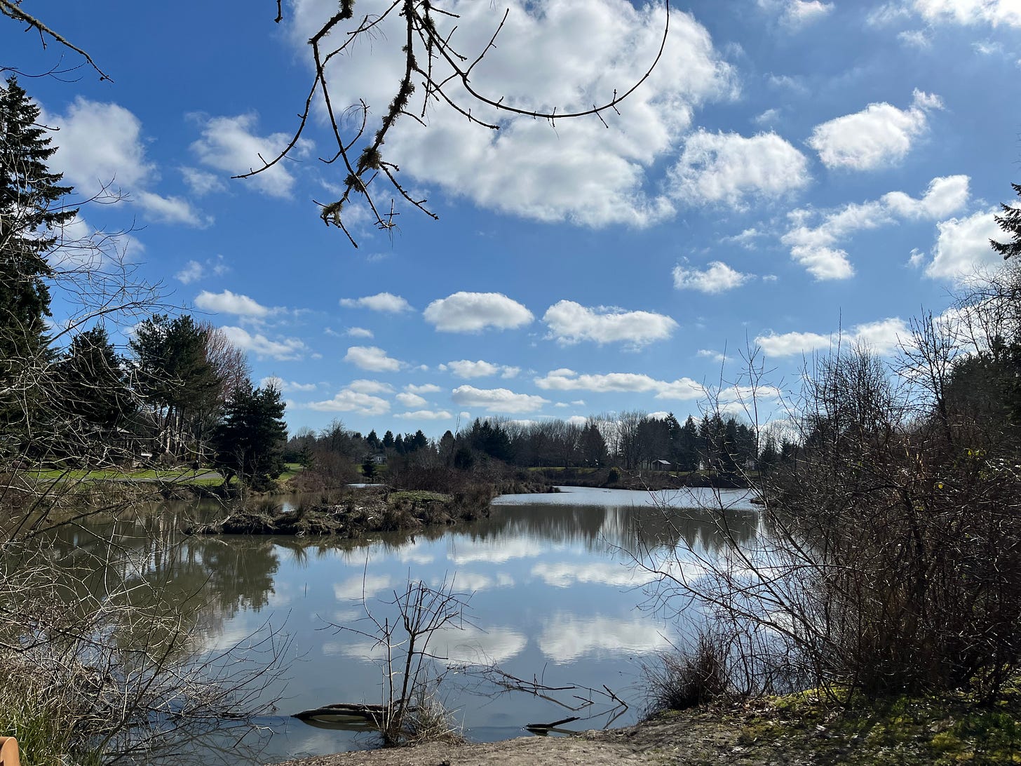 One way I’ve managed to save my creative soul and spirit is to get out into nature. Walking isn’t just about exercise, it’s about moving my body, mind and soul into the real world of nature. Trees and birds and squirrels who live in peaceful contentment rooted in the earth around them. Thankfully, I have a beautiful park in my neighborhood to walk around everyday.