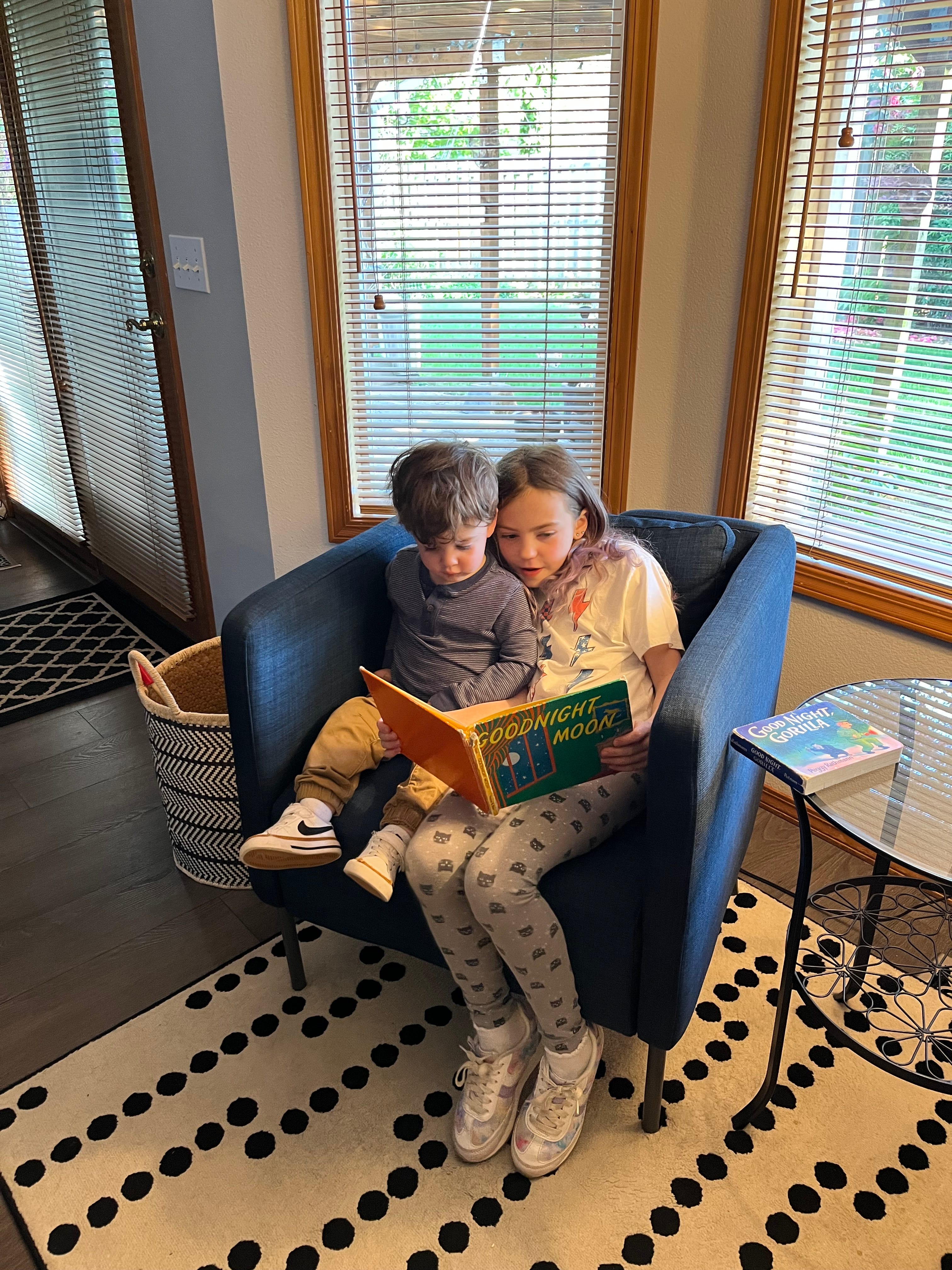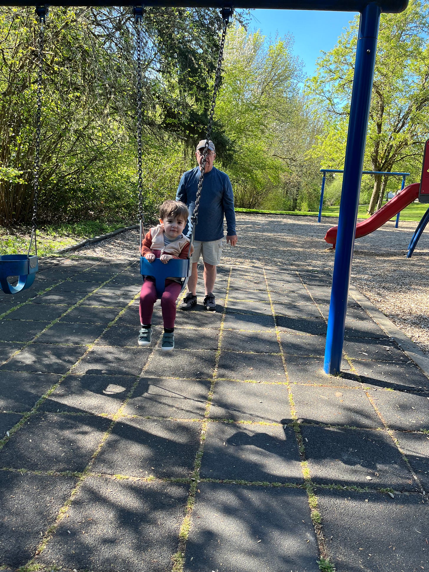 Hearing the kids play on the swings