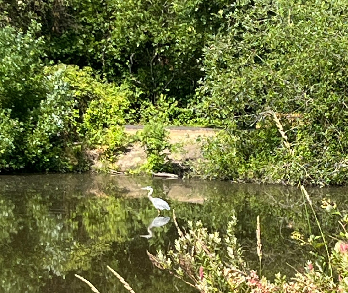 Seeing the Heron floating in the water.