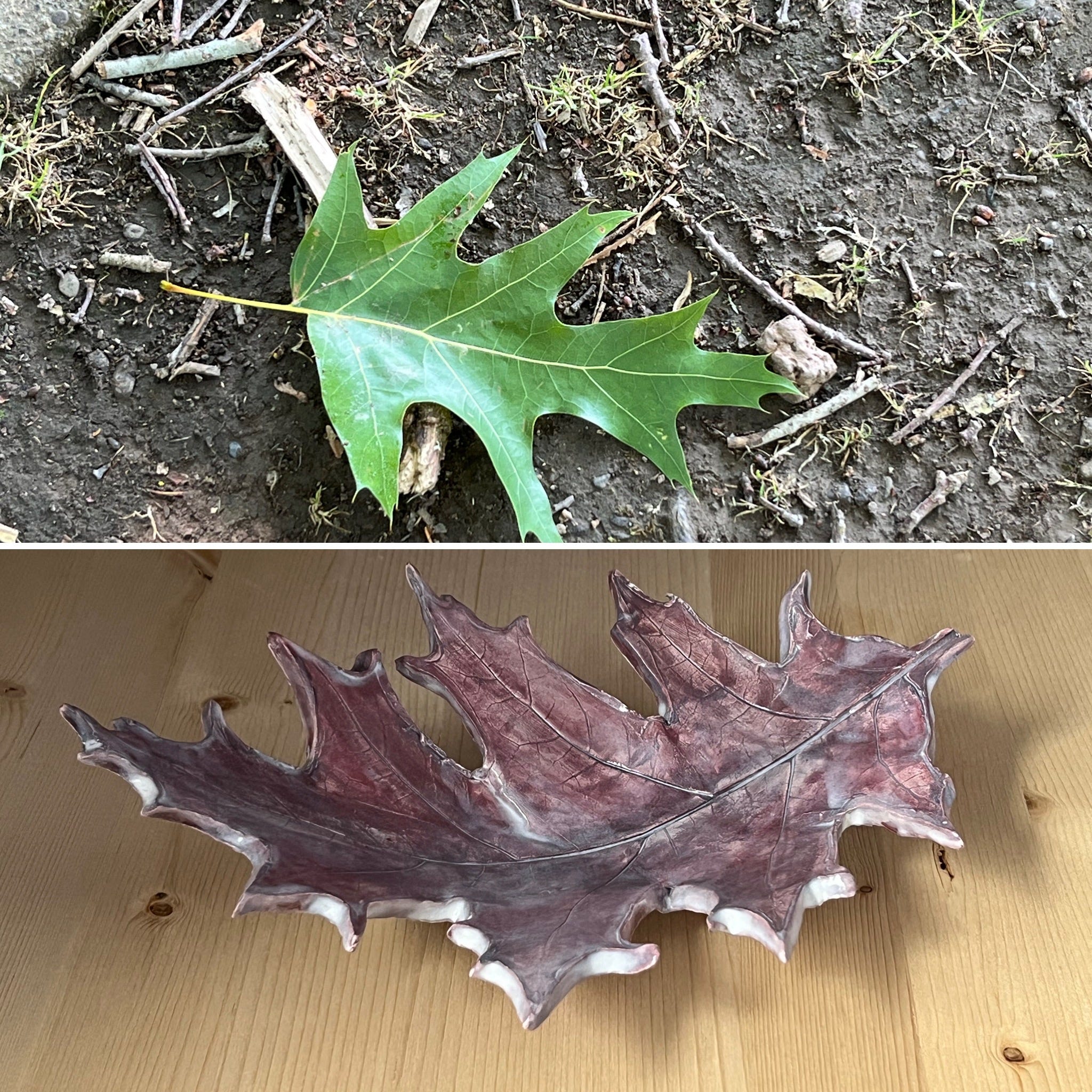 Looking down at an oak leaf and thinking of how I could form it in clay.